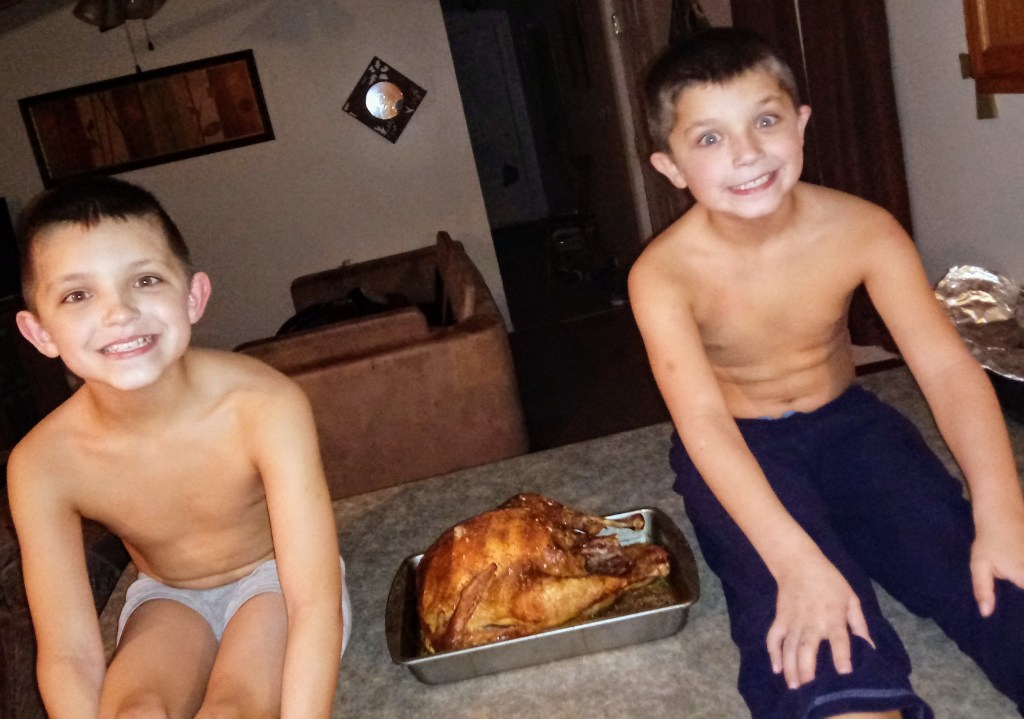 The most ironic part of the night was that the ONLY thing traditional about our Thanksgiving was the turkey. The boys literally sat on the kitchen counter in their underwear, each eating a giant turkey leg with no plate like Vikings. And that was the very BEST part of my night. It brought me great joy to realize that despite the turkey, we did Thanksgiving our own way after all.